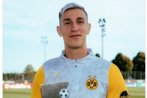 體育資訊9月24日訊 多特官方更新社媒動(dòng)態(tài),曬出隊(duì)內(nèi)中衛(wèi)施洛特貝克與上賽季最佳陣容獎(jiǎng)杯的合照。
