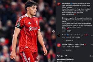 體育資訊09月25日訊 據(jù)名記羅馬諾報道,利物浦18歲中衛(wèi)萊奧尼十字韌帶撕裂,將缺陣數(shù)月,爭取賽季末復(fù)出,萊奧尼剛剛更新社媒。
