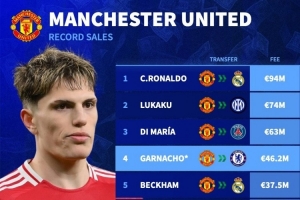 曼聯(lián)出售球員轉(zhuǎn)會費排名: