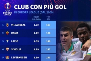 體育資訊9月25日訊 日前,德國轉(zhuǎn)會市場網(wǎng)站統(tǒng)計(jì)了2009年以來歐聯(lián)杯進(jìn)球數(shù)排行,比利亞雷亞爾以167球居首,塞維利亞第四、曼聯(lián)第六。