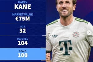 在拜仁4-0不萊梅的德甲聯(lián)賽中,凱恩完成梅開二度,打進(jìn)自己在拜仁的第100球,同時(shí)也躋身為單一俱樂部最快打進(jìn)100球的前十球員行列。