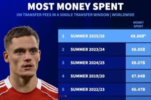1、2025/26夏窗:88.6億