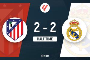 體育資訊9月27日訊 北京時(shí)間9月27日22:15,西甲第7輪馬競迎戰(zhàn)皇馬的比賽在大都會(huì)球場進(jìn)行,上半場索爾洛特開場失單刀,小西蒙尼助攻勒諾爾芒頭球首開記錄,居勒爾助攻姆巴佩單刀推射扳平比分,隨后維尼修斯助攻居勒爾抽射反超比分,阿爾瓦雷斯遠(yuǎn)射中柱,補(bǔ)時(shí)索爾洛特頭球扳平比分,半場結(jié)束,皇馬2-2馬競。