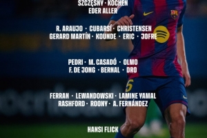 體育資訊9月28日訊 巴薩本輪西甲將迎戰(zhàn)皇家社會(huì),球隊(duì)官方也公布了本場球隊(duì)大名單,亞馬爾回歸,拉菲尼亞、門將霍安-加西亞缺席。具體如下: