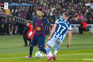 亞馬爾本場比賽再次展現(xiàn)高超技術(shù),在邊路做出一次牛尾巴穿襠,輕松過掉了防守他的塞爾吉奧-戈麥斯。