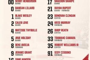 亨德森、利拉德、布雷克-韋斯利、凱萊布-樂(lè)福、塞布爾、朱-霍勒迪、阿夫迪亞、杰拉米-格蘭特、楊瀚森、夏普、呂佩爾、克林根、克里斯-穆雷、杜普-里斯、卡馬拉、羅威、西索科。