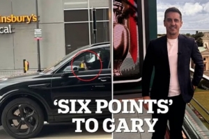 內(nèi)維爾在一個(gè)紅燈前停車時(shí),一只手握著方向盤,另一只手拿著手機(jī),并在車輛啟動(dòng)后繼續(xù)保持該狀態(tài)。根據(jù)法律,這一行為可能導(dǎo)致200英鎊的罰款和駕照被扣6分。