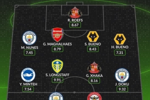 中場:明特(布萊頓)、朗斯塔夫(利茲聯(lián))、扎卡(桑德蘭)、多庫(曼城)