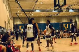 當(dāng)時(shí)是Veritas Academy的進(jìn)攻回合,張博源和對手(白隊(duì)13號球員)對位,兩人胳膊糾纏在一起,隨后發(fā)生口角,還升級為肢體沖突,張博源被沖上來的隊(duì)友護(hù)住,他的隊(duì)友們將對手推開,更多人加入沖突,導(dǎo)致比賽停止,教練也參與了進(jìn)來。