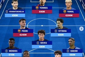 體育資訊10月1日訊 本輪歐冠迎來巴薩與巴黎的強(qiáng)強(qiáng)較量。德轉(zhuǎn)也盤點(diǎn)了兩支球隊(duì)目前身價(jià)最高11人陣容,具體如下: