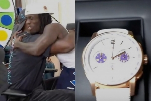 詹姆斯首先贈(zèng)予Kai Cenat的一只價(jià)值20萬美元的愛彼手表,隨后又向全體直播團(tuán)隊(duì)成員每人贈(zèng)送了一雙個(gè)人第23代簽名戰(zhàn)靴Nike LeBron 23。