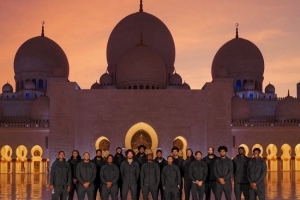 體育資訊10月1日訊 76人官方曬全隊(duì)在阿布扎比地標(biāo)謝赫扎伊德清真寺合照的合照。