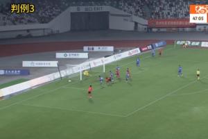 判例三:中甲聯(lián)賽第24輪,蘇州東吳vs南京城市。比賽第48分鐘,蘇州東吳6號隊員頭球射門,南京城市守門員將球撲出,助理裁判員示意球的整體已經(jīng)越過球門線,裁判員判蘇州東吳隊進(jìn)球得分。
