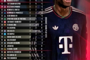 兩戰(zhàn)全勝的球隊包括拜仁、皇馬、巴黎、國米、阿森納、卡拉巴赫,而拜仁與皇馬同為6個凈勝球,拜仁以多進一球優(yōu)勢領(lǐng)跑。