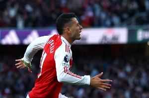 據(jù)Squawka統(tǒng)計(jì),馬丁內(nèi)利在48場各賽事比賽中為阿森納破門,阿森納39勝9平保持不敗。
