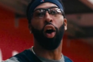 視頻當中,濃眉戴著護目鏡底角三分一發(fā)入魂,場邊的歐文搞怪互動。