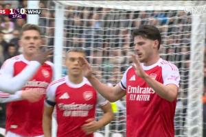 體育資訊10月04日訊 英超第7輪,阿森納vs西漢姆聯(lián)。比賽第38分鐘,賴斯補(bǔ)射攻破舊主大門,阿森納1-0領(lǐng)先!進(jìn)球后賴斯沒有慶祝。