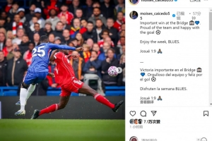 凱塞多社媒曬出比賽照片,并寫道:“在斯坦福橋取得重要勝利,為球隊感到驕傲,為進球感到開心。享受這個周末吧,藍軍球迷們。”