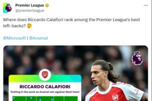英超官方賽后曬出了卡拉菲奧里的觸點(diǎn)圖,并發(fā)問:卡拉菲奧里在英超最佳左后衛(wèi)排名第幾?
