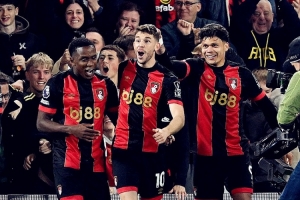 在英超第7輪率先開打的一場比賽中,伯恩茅斯憑借塞梅尼奧的梅開二度以及小克魯伊維特的進球,主場逆轉(zhuǎn)富勒姆。首輪輸給利物浦時,伯恩茅斯曾被很多媒體預(yù)測為本賽季的降級大熱門,但伊勞拉和弟子們很快以6輪不?。?勝2平)的表現(xiàn)粉碎了輿論的質(zhì)疑。擊敗富勒姆之后,伯恩茅斯一度占據(jù)英超積分榜第二位(目前排名第4),創(chuàng)造了隊史頂級聯(lián)賽最佳開局。
