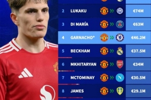德轉(zhuǎn)曬出曼聯(lián)出球球員收入的排行榜,加納喬以4620萬(wàn)歐元轉(zhuǎn)會(huì)費(fèi)成為曼聯(lián)隊(duì)史售價(jià)第四高的球員。超越了2003年貝克漢姆加盟皇家馬德里時(shí)的3750萬(wàn)歐元。C羅2009年以9400萬(wàn)歐元轉(zhuǎn)會(huì)皇馬仍是曼聯(lián)隊(duì)史最高售價(jià)紀(jì)錄,德轉(zhuǎn)表示,短期內(nèi)極有可能無(wú)人能超越。