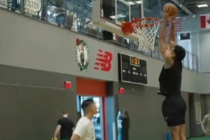 由視頻可見(jiàn),塔圖姆已經(jīng)可以在原地起跳完成雙手扣籃,塔圖姆配文寫(xiě)道:“一定是鞋子的原因?????!?/p>