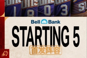 賽前太陽官方公布首發(fā)陣容:布克、阿倫、鄧恩、狄龍、伊戈達羅,并在圖中配上了中文“首發(fā)陣容的字樣”。