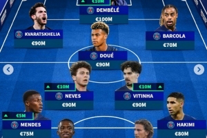 前鋒:克瓦拉茨赫利亞 9000萬歐,登貝萊 1億歐,巴爾科拉 7000萬歐