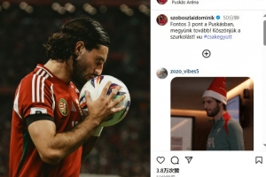 體育資訊10月13日訊 匈牙利在世預(yù)賽2-0擊敗亞美尼亞,匈牙利中場索博斯洛伊在球隊取勝后更新了個人社交媒體,并發(fā)布了一張自己親吻比賽用球的照片。