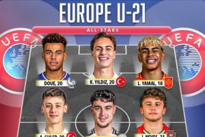 體育資訊10月13日訊 Score 90評選了歐洲U21年齡段的全明星陣容,亞馬爾、若昂-內(nèi)維斯領銜,其中西班牙三人,土耳其、法國、英格蘭各兩人,葡萄牙、德國各一人。
