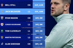 體育資訊10月14日訊 德國轉會市場盤點了英國前四級別聯(lián)賽球隊主教練年齡情況,盧頓新帥威爾希爾以33歲10個月成第三年輕主教練。