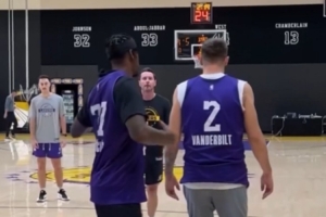 視頻當(dāng)中,東契奇和范德比爾特互換球衣,兩人各自身穿對方的球衣進(jìn)行訓(xùn)練。