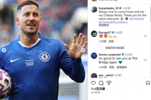阿扎爾寫道:回家并見到切爾西大家庭的成員總是很開心,感謝你們的熱烈歡迎!