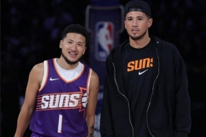 體育資訊10月15日訊 今天太陽球星更新INS曬出了中國賽期間自己與其模仿者“中文布克(@cy布克)”的合影,配上表情:“??????”。