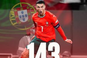 C羅國家隊生涯225場打進143球,繼續(xù)領跑國家隊歷史射手榜,領先第二梅西29球!