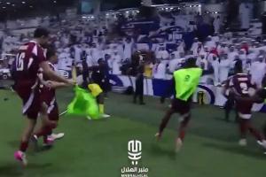 這一舉動(dòng)點(diǎn)燃了阿聯(lián)酋球迷的怒火,他們紛紛向場(chǎng)內(nèi)投資水瓶、鞋子等雜物,更有控制不住的阿聯(lián)酋球迷直接沖場(chǎng)與安保扭打在一起。