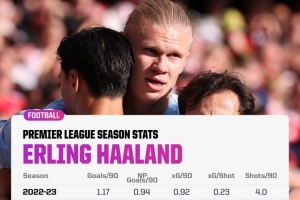 體育資訊10月17日訊 據(jù)Opta統(tǒng)計,哈蘭德本賽季每90分鐘射門、進球等數(shù)據(jù)創(chuàng)造英超生涯新高。