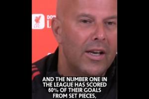 斯洛特表示:“如果你告訴我,我們40%的失球都來自定位球,而聯(lián)賽第一60%的進球都來自定位球,但我們卻只落后他們一分,我大概會覺得,‘這情況也沒那么糟’。當(dāng)然,對于一支志在競爭的球隊而言,丟四個(定位)球顯然太多了。”