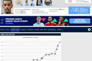 德轉(zhuǎn)管理員表示:“所有人都認(rèn)為伊薩克的轉(zhuǎn)會(huì)費(fèi)將打破英超紀(jì)錄,事實(shí)果然如此。這名瑞典前鋒以1.45億歐元基礎(chǔ)轉(zhuǎn)會(huì)費(fèi)登陸安菲爾德,其市場價(jià)值隨之升至1.4億歐元。