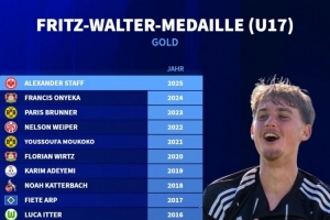 體育資訊10月17日訊 法蘭克福前鋒斯塔夫當(dāng)選德國U17年度最佳新秀,德國轉(zhuǎn)會市場列出了歷屆德國U17年度最佳新秀名單。