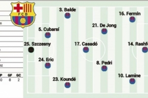 體育資訊10月18日訊 北京時間今天晚上,巴薩將在西甲第9輪比賽中主場對陣赫羅納,巴薩多名進攻端球員無法出戰(zhàn)此役,《阿斯報》預(yù)測了巴薩本場比賽的首發(fā)陣容。