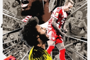 海報是充滿張力的拼貼畫風(fēng)格,拜仁后衛(wèi)于帕梅卡諾、凱恩一同出鏡,背景還有昔日對決瞬間。