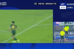 體育資訊10月18日訊 中超第27輪,浙江坐鎮(zhèn)主場對陣山東泰山,主裁親自回看VAR,沒有判罰浙江球員禁區(qū)內(nèi)手球犯規(guī),目前比分仍為0-0