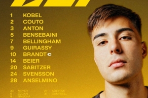 多特首發(fā):1-科貝爾、2-揚-庫托、3-安東、5-本塞拜尼、7-喬布-貝林厄姆、9-吉拉西、10-布蘭特、14-拜爾、20-薩比策、24-斯文松、28-安塞爾米諾