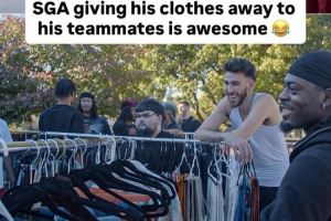亞歷山大說(shuō),因?yàn)樽约阂路犹啵旅遍g空間有限,所以需要定期清空一些服飾。他會(huì)邀請(qǐng)隊(duì)友來(lái)挑選,半賣半送,給隊(duì)友們撿漏。