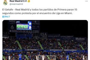 體育資訊10月20日訊 西甲第9輪,皇馬客戰(zhàn)赫塔費(fèi),兩隊(duì)球員開場(chǎng)暫停15秒以抗議西甲海外賽,皇馬也在社媒和官網(wǎng)發(fā)文。