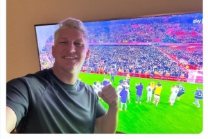 曼聯(lián)舊將、德國足壇名宿施魏因斯泰格通過電視觀看雙紅會(huì),賽后他曬出自己在電視機(jī)前的照片,配文:“簡直太美妙了!加油曼聯(lián),多么精彩的比賽!”