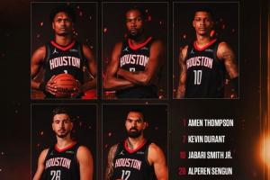 體育資訊10月21日訊 火箭主教練烏度卡透露球隊(duì)新賽季揭幕戰(zhàn)對陣?yán)做氖装l(fā),分別為阿門-湯普森、杜蘭特、小賈巴里-史密斯、申京和史蒂文-亞當(dāng)斯。