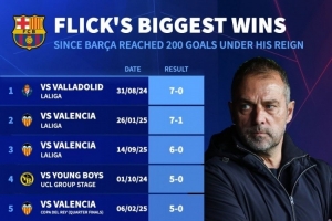 德轉(zhuǎn)列弗里克執(zhí)教巴薩以來(lái)最大勝利排名: