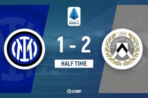 上半場比賽結(jié)束,國際米蘭主場暫時1-2落后烏迪內(nèi)斯。